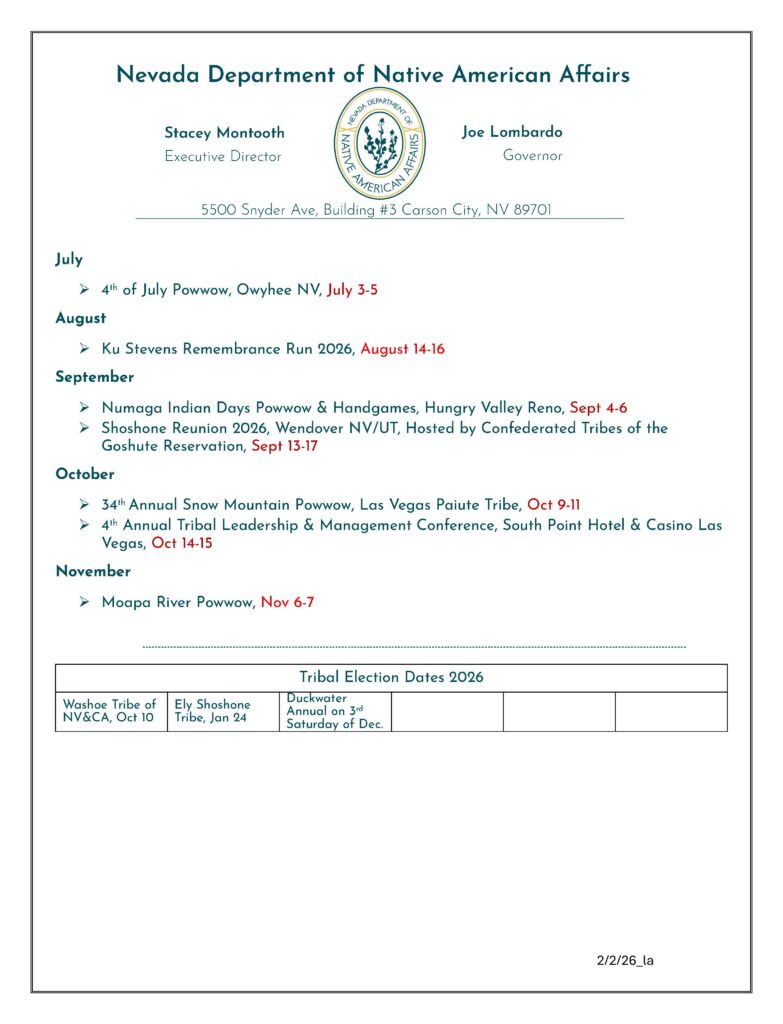 Important Upcoming Events In Nevada’s Tribal Nations