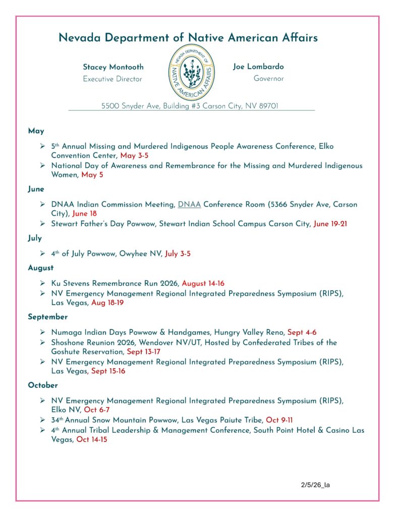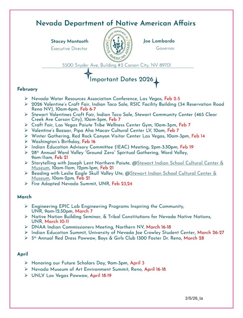 ✨🪶Upcoming Dates in Nevada’s Tribal Nations!!! 🪶✨
